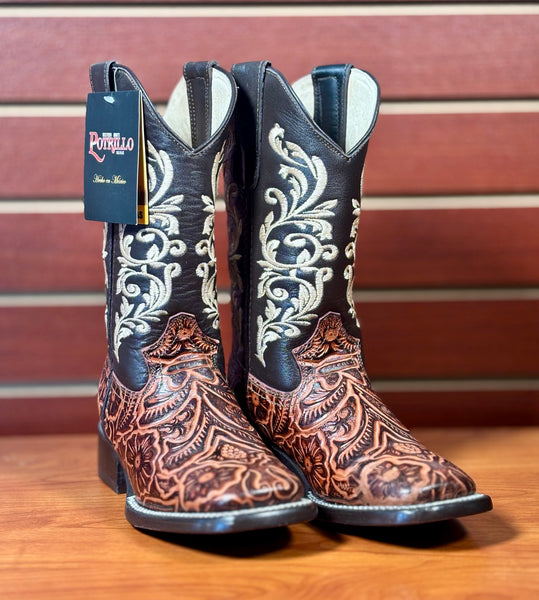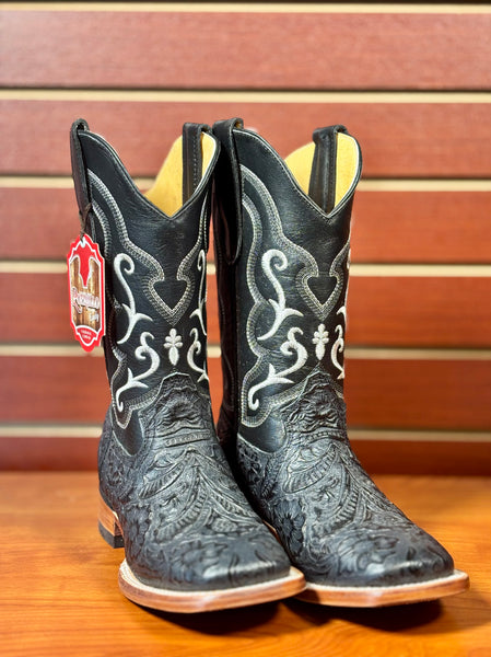 Hand tooled square toe boot