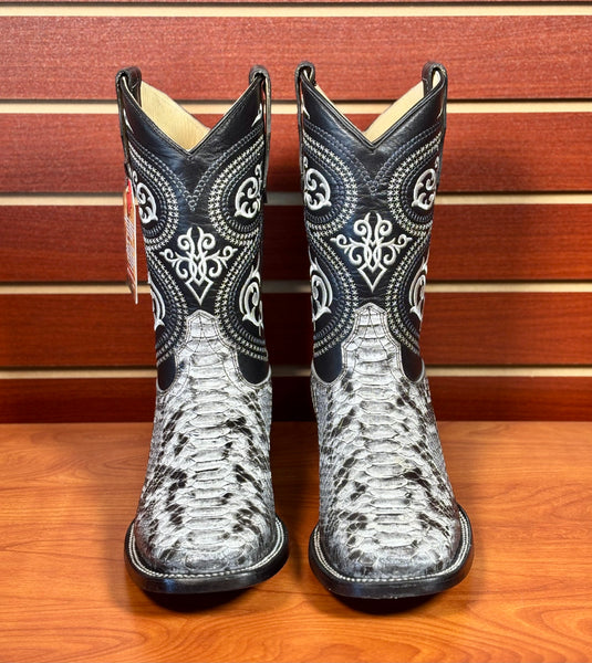 Esta bota vaquera cuadrada para hombre combina estilo y autenticidad con su exclusivo estampado de culebra y suela de vaqueta, que garantiza durabilidad y comodidad. Ideal para quienes buscan un calzado resistente y con un diseño distintivo que refleja tradición y elegancia en cada paso.